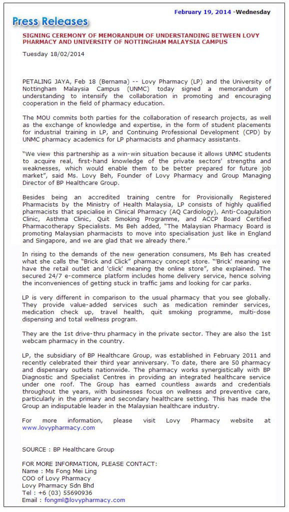 Write Up In Oriental Daily BP Healthcare Group Annual Dinner 2014